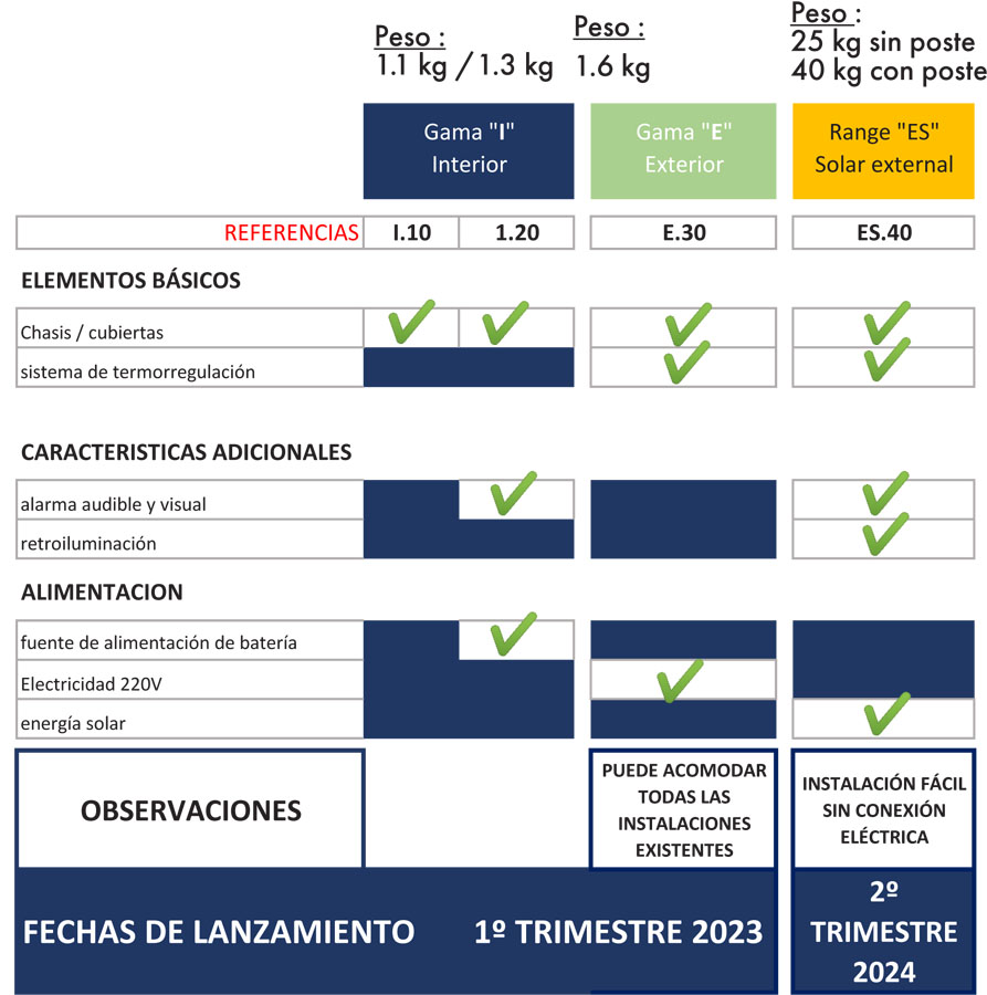 El armario exterior E.30 es universal. Consta de una cubierta transparente, una barra anticaída y un sistema de termorregulación (calor y ventilación). Dispone de alarma y sistema Led.